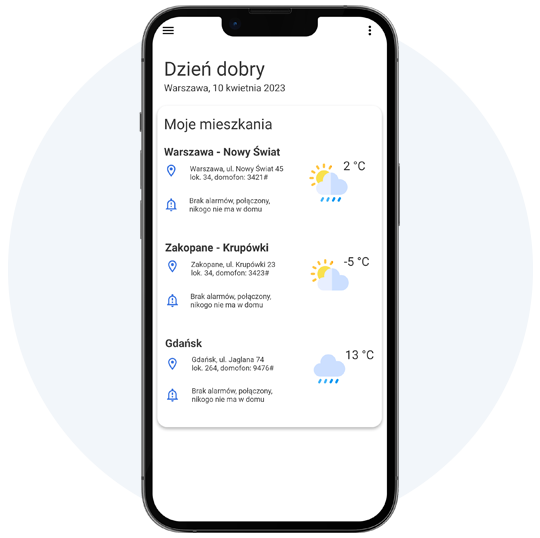 ➔   podgląd kluczowych parametrów apartamentu (alarmy, zdarzenia oraz dane z czujników)