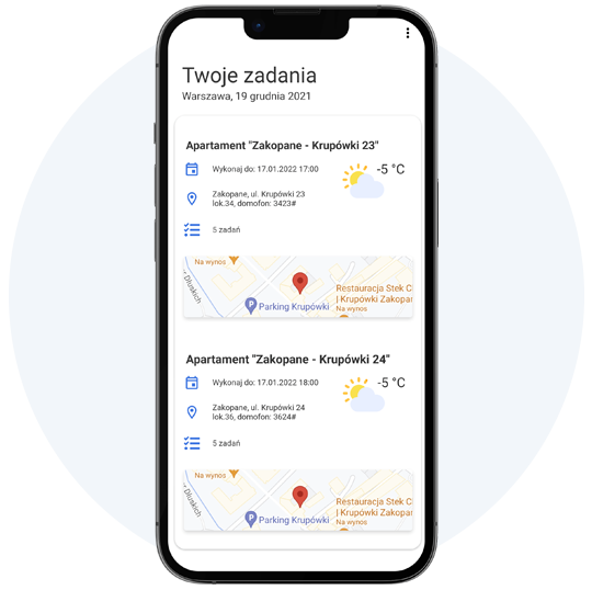 ➔   podgląd nadchodzących zadań do wykonania w obsługiwanych apartamentach
